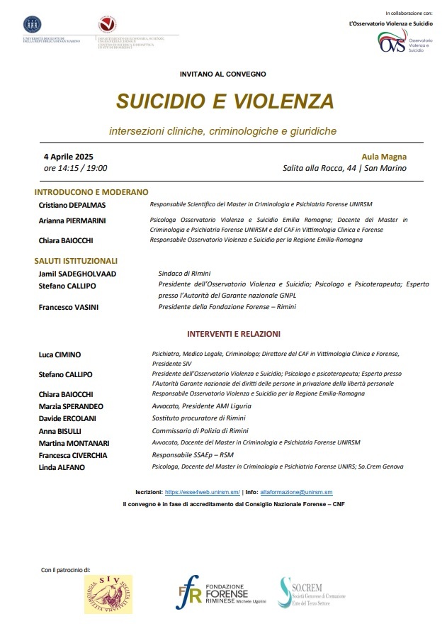 "SUICIDIO E VIOLENZA. Intersezioni cliniche, criminologiche e giuridiche".