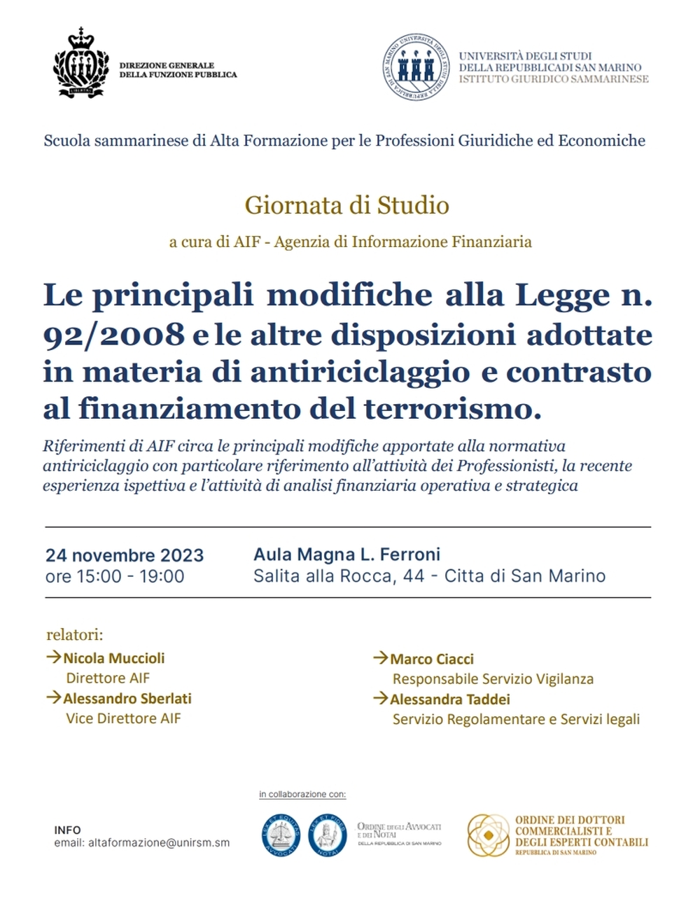 2023, Giornata di studio LE PRINCIPALI MODIFICHE ALLA LEGGE N.92/2008