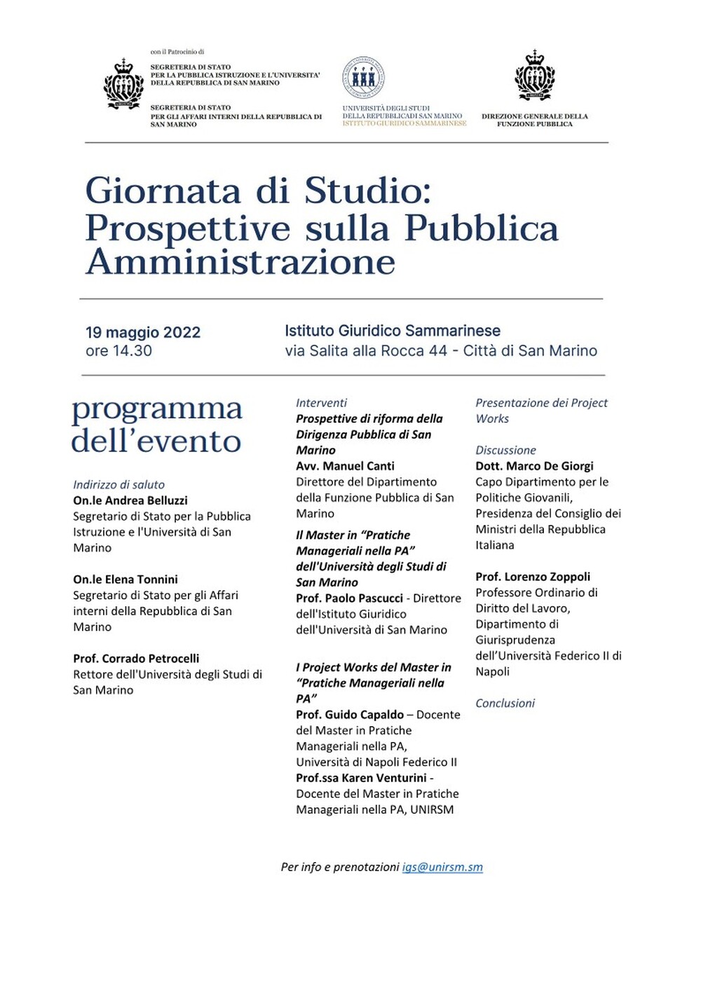 2022, Giornata di studio PROSPETTIVE SULLA PUBBLICA AMMINISTRAZIONE