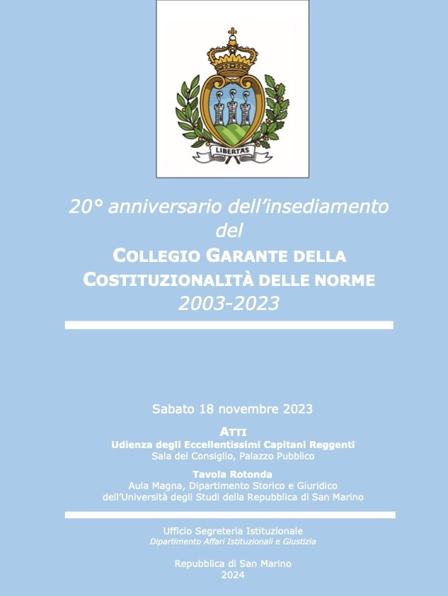 2023, 20°Anniversario insediamento del Collegio Garante della Costituzionalità delle Norme 2003-2023